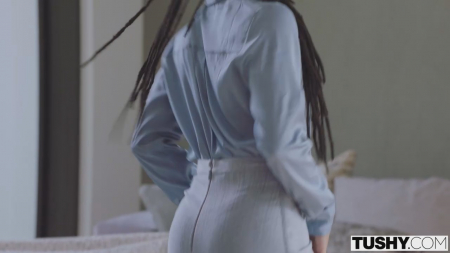 Утро негритянки началось с уборки и подготовки себя к приходу гостя, который должен поставить подписи в очень важных бумагах. Если что-то пойдет не так, да даже если все хорошо будет - нужно подготовить попку, чем и занялась чернявая хозяйка на кровати. Только она успела переодеться из халата в более деловую одежду, прозвенел звонок в дверь. Это был статный мужчина с проглядывающей сединой в бороде, внимательно изучивший распечатанное, прежде чем поставить автограф. Дела закончены и девушка села сверху на господина, уйдя с ним в спальню, где повторила разминку задницы настоящим членом.