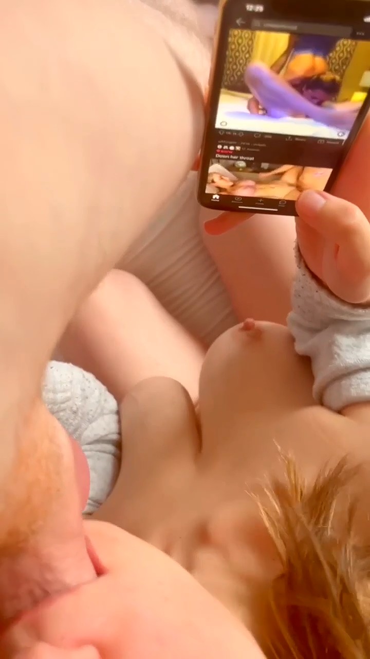 Миленькая извращенка пролистывает такие же короткие ролики как этот на телефоне, останавливаясь только на тех, где девушки делают минет, очень глубокий минет. Сама же героиня, увидев как работают другие, повторяет на пенисе бойфренда, но работая еще лучше, так как при заглоте со звуками не касается губами ствола, а уже когда голова идет обратно, схлопывает губки, отчего парень застонал от неимоверного кайфа. Вот только знать бы как зовут эту дивчину или пару, дабы добавить с ними еще интересненького, явно пошлая малышка любит все, что связано с сексом.