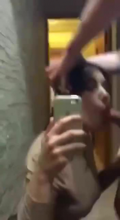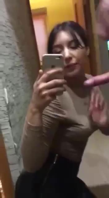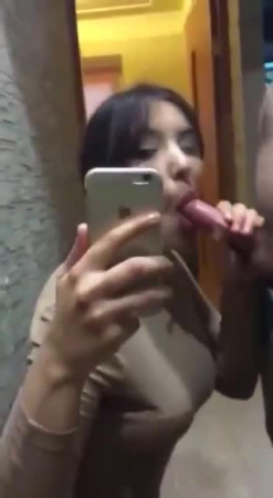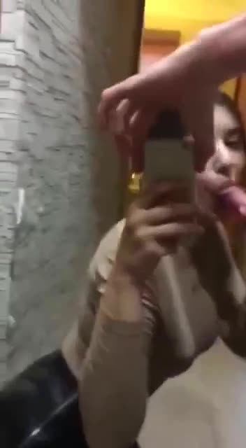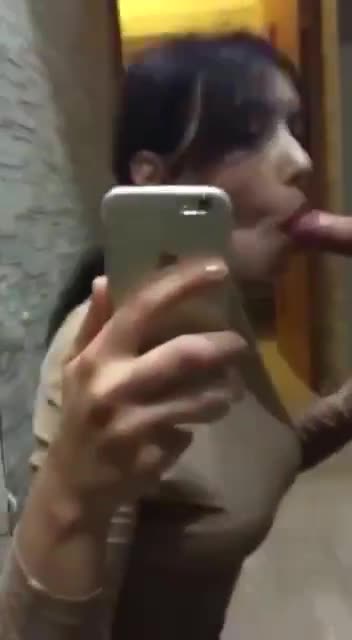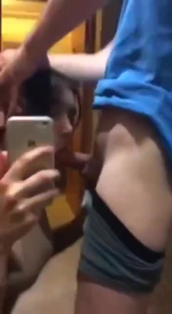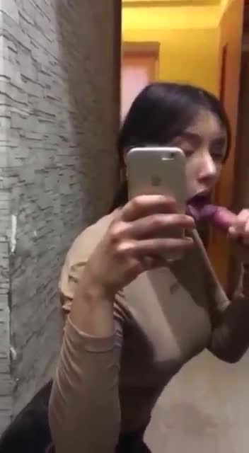 Короткий ролик: девушка сосет перед зеркалом, снимая себя на телефон