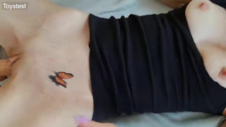100 процентов красивая дама, не показывающая свое лицо в камеру, приобрела для своей любимой писечки очень длинный фаллоимитатор с ребрышками - они дарят при погружении самые приятные чувства, что до оргазма рукой подать. Поначалу она медленно извивалась, неторопливо садилась на него сверху - так мастурбаторша хотела понять на какую глубину сможет справиться, а потом просто взяла игрушку в руку и стала быстро-быстро себя им долбить, чтобы наконец-то кончить и закончить видео с положительным результатом. Все в черной футболке, но с голыми сиськами.